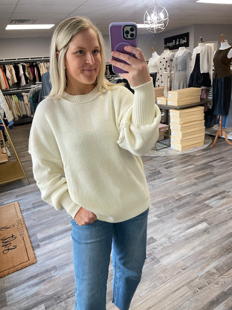 Velvet Top with Pleated Ruffle Sleeves - Cream